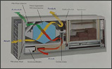 Der Kreuz-Gegenstrom-Wärmetauscher nutzt die Wärmeenergie der Abluft optimal aus. Innovative Speichertechnik hält die einmal gespeicherte Temperatur besonders lange und gibt sie gleichmäßig an den Raum ab. Das spart viel Energie!